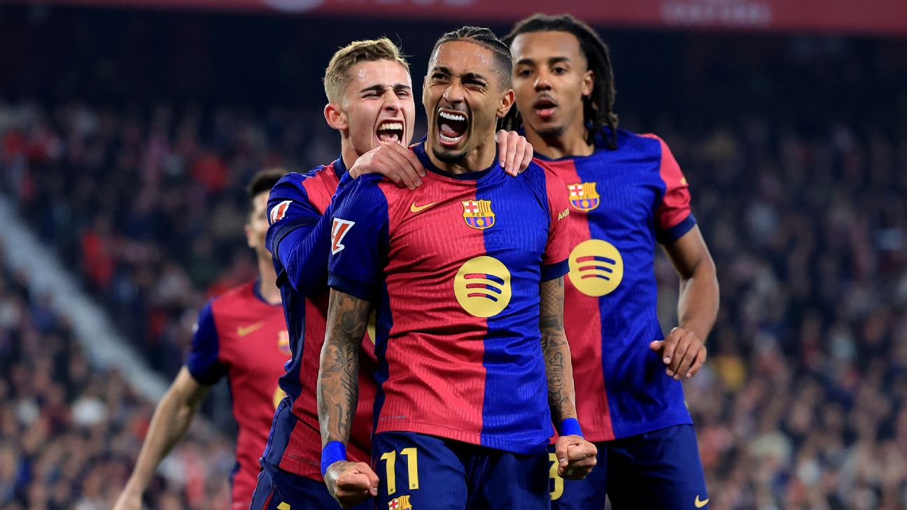 Fermin López came off the bench to restore Barca’s lead two minutes after the break, and Raphinha extended their lead with a brilliant strike from outside the box.